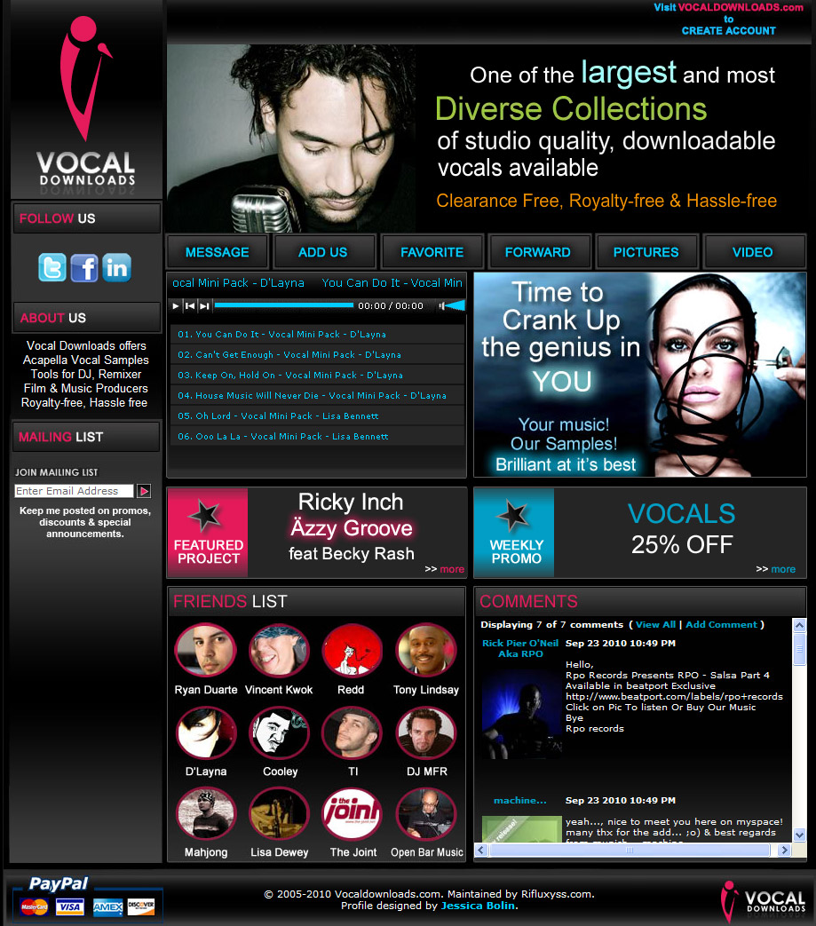 custom CSS myspace profile with Flash/XML MP3 player for audio sample dealer